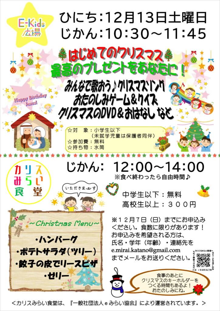 12月13日(土) E-Kids広場のご案内